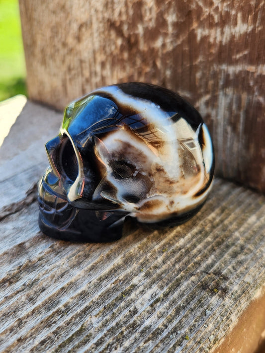AAA Black Onyx Crystal Skull: Hand Carved, Unique Streaks